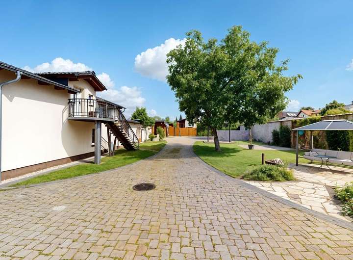 Komfortables Parken garantieren Garage, Carport und mehrere Stellplätze. Die elektrische Toranlage sichert Ihre Privatsphäre und vermittelt ein Gefühl von Exklusivität schon bei der Einfahrt.