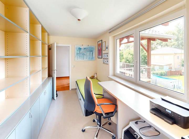 Auf rund 187 m² Wohnfläche entfaltet sich ein durchdachtes Raumkonzept, das sich ganz den Bedürfnissen Ihrer Familie anpasst. Helle, freundlich geschnittene Zimmer bieten Platz für Schlafräume, Kinderzimmer, Gästezimmer oder ein inspirierendes Homeoffice. Im Zentrum des Hauses liegt der lichtdurchflutete Wohn- und Essbereich mit Kamin, der eine warme und einladende Atmosphäre schafft. Große Fenster und der angrenzende Wintergarten öffnen den Blick ins Grüne – und lassen Innen- und Außenbereich harmonisch ineinanderfließen.