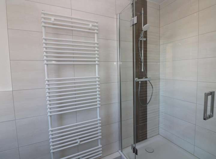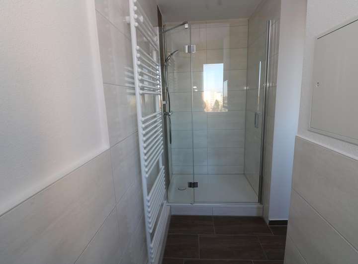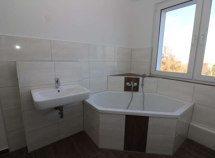 - modern gefliestes Bad mit Eckwanne & Dusche
