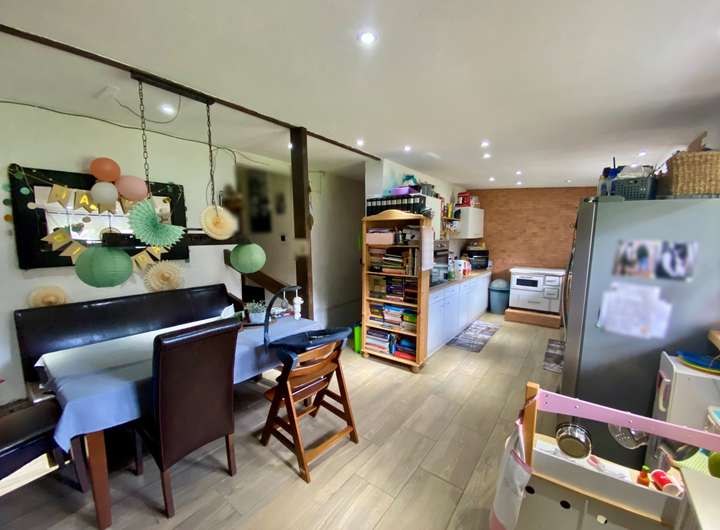 Der Bungalow ist komfortabel und modern ausgestattet. Im Erdgeschoss gelangen Sie über die Diele in den großen Essbereich mit offener Küche und dem angrenzenden Wohnzimmer mit Echtholzfußboden. Zwei Kinderzimmer, das Badezimmer mit Dusche sowie der Heizungsraum befinden sich ebenfalls noch auf dieser Ebene.