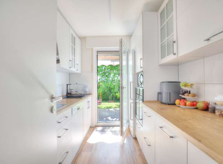 2023: Neue Küche im EG, neuer Fliesenspiegel, Raum neu renoviert