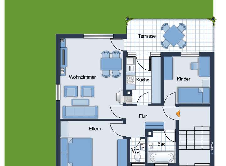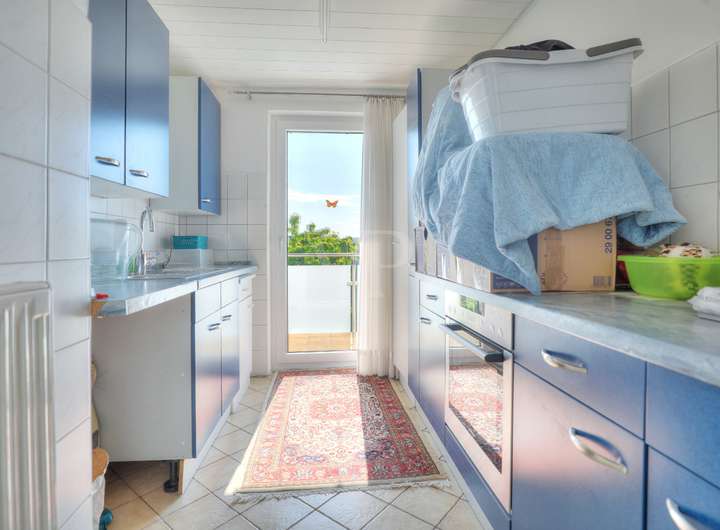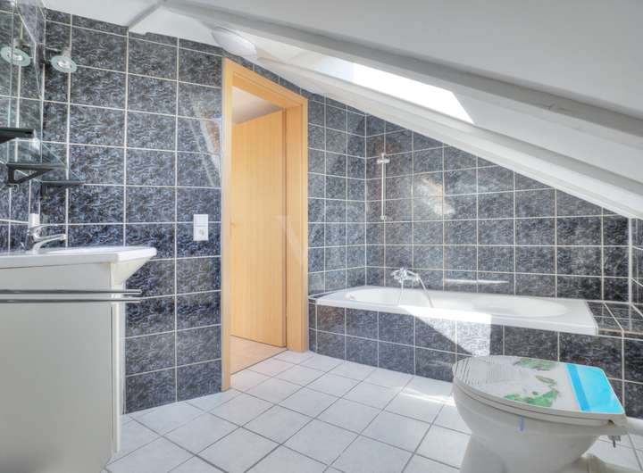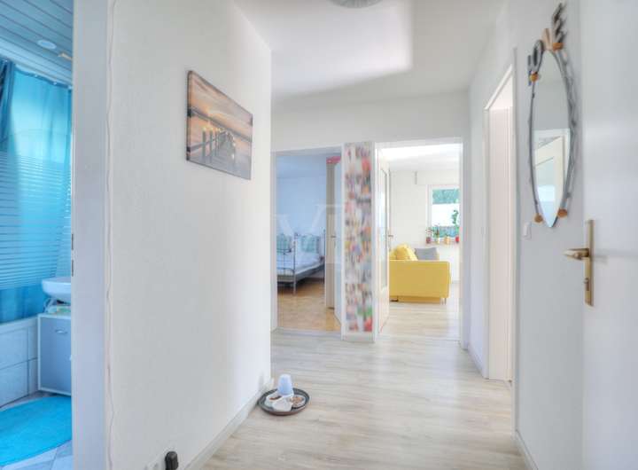 •Erdgeschoss – ca. 75 m²: Helle, gut geschnittene Räume, Küche mit direktem Zugang zur sonnigen Süd-West-Terrasse samt Markise, Tageslichtbad sowie separates WC.