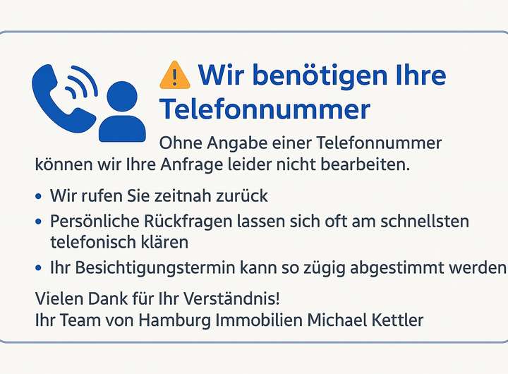 4. Seriosität und Vertrauen: Die Angabe vollständiger Kontaktdaten schafft eine Vertrauensbasis zwischen Ihnen als Interessent und uns als Makler. Es zeigt, dass Sie ernsthaft an der Immobilie interessiert sind und erleichtert uns die Zusammenarbeit.