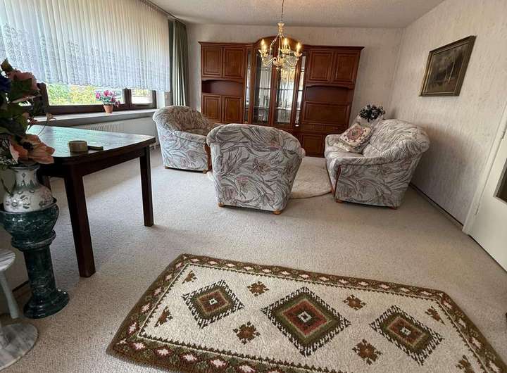 - EG: Wohnzimmer, Esszimmer, Schlafzimmer, Küche, Vollbad, Gäste-WC, Wintergarten (ca. 75 qm Wfl.)