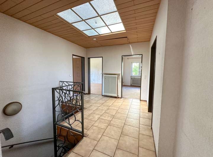 Das Erdgeschoss beherbergt 4 Zimmer über etwa 120 qm Wohnfläche. Dazu befinden sich im Untergeschoss noch zwei weitere Wohnräume mit Tageslicht.