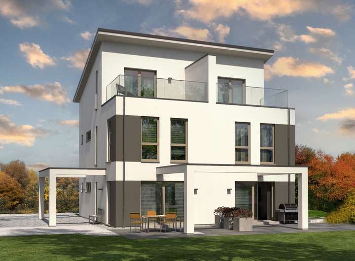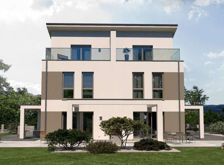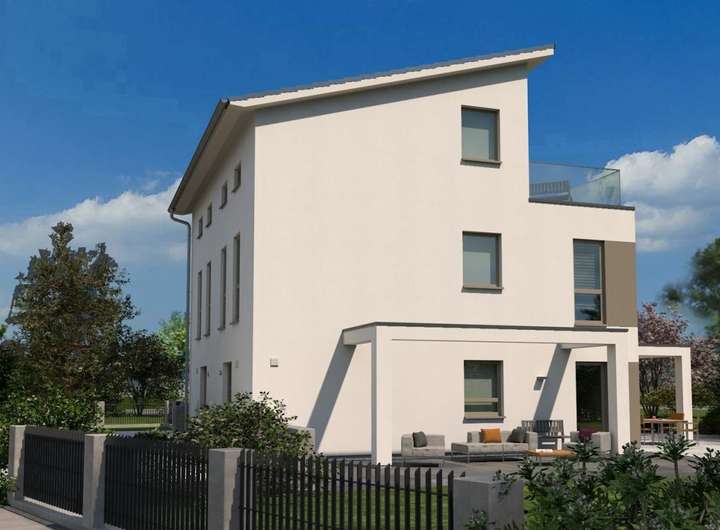 Das 2 ½-geschossige Raumwunder beeindruckt durch eine großzügige Raumaufteilung über drei Etagen. Wohnen und Kochen, Kinderzimmer und Bad, Elternbereich und Büro - jeder Bereich hat seine eigene Etage. Die Grundrisse sind spiegelbildlich und identisch. Die Bewohner sorgen für Individualität und persönlichen Stil. Alle Räume zeichnen sich durch ihre Größe und Helligkeit aus. Unter dem leicht geneigten Pultdach bietet das Dachgeschoss eine komfortable Kniestockhöhe von 1,70 m. Ein absolutes Highlight sind die großzügigen Dachterrassen, die ungestörte Sonnenstunden im Freien ermöglichen.