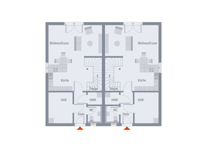GEHOBENES DOPPELHAUS AUF 2,5 ETAGEN