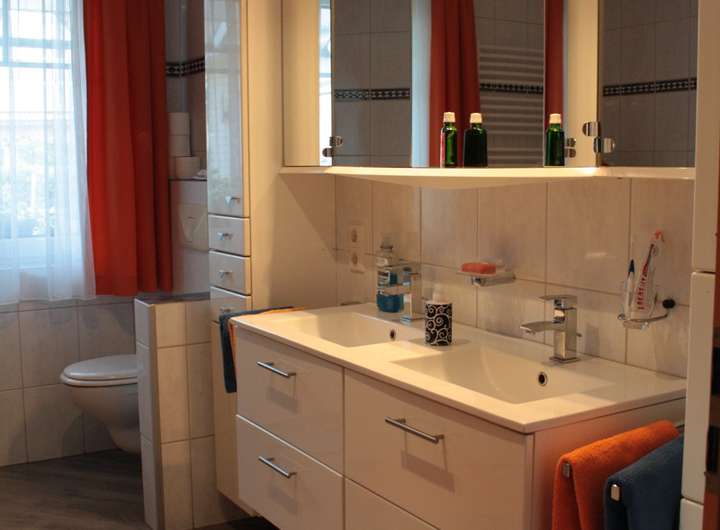 * Hochwertige Bodenbeläge: ökologisches Linoleum, edle Fliesen, Ahorn-Massivparkett;