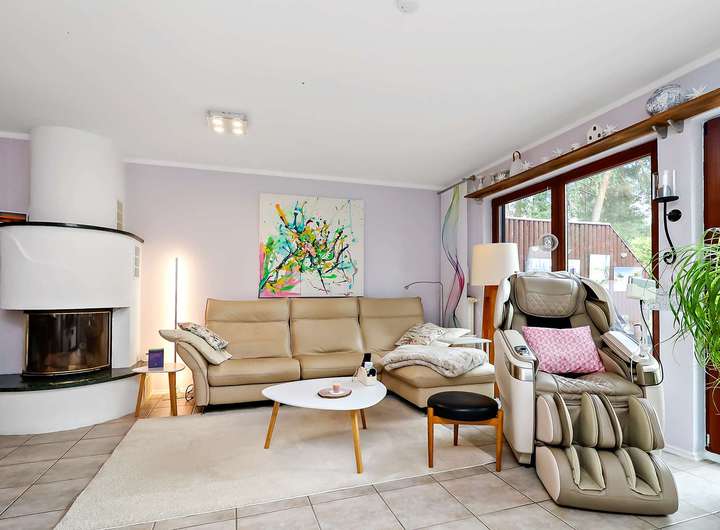 Diese attraktive Doppelhaushälfte präsentiert sich als durchdachtes und hochwertig ausgestattetes Zuhause mit einer Grundstücksfläche von ca. 318 m² und einer Wohnfläche von ca. 126 m², ergänzt durch ca. 54 m² an praktischer Nutzfläche. Das gepflegte Haus – innen wie außen – bietet mit insgesamt fünf Zimmern und einer Vielzahl moderner Ausstattungsdetails ein komfortables Wohnambiente für Familien oder anspruchsvolle Paare. Der offen gestaltete Wohnbereich bildet das Herzstück des Hauses: Ein Kamin mit 180 Grad Panoramasicht und mit aktuellem Schornsteinfeger-Zertifikat (2024) sorgt für wohlige Wärme und eine gemütliche Atmosphäre.