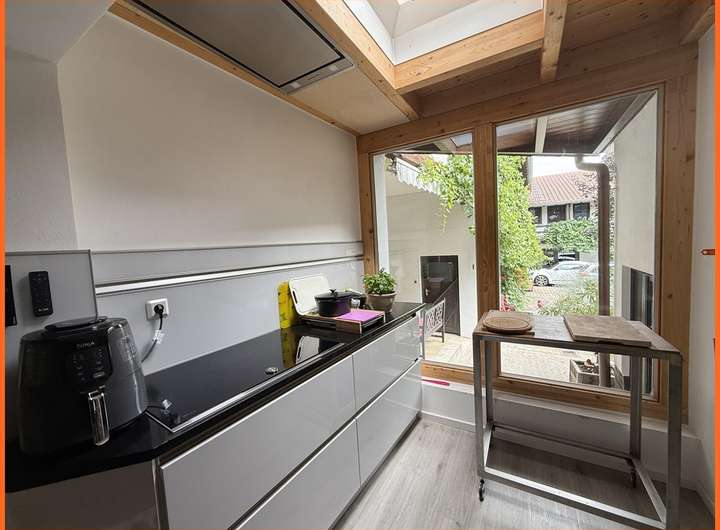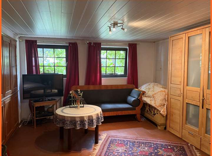 Abstellraum, Bad mit Fenster, Einbauküche, Einliegerwohnung, Gartenanteil, offene Küche, Wintergarten
