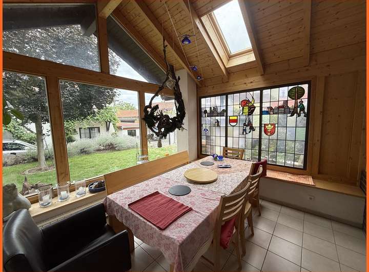 Willkommen an einem Ort, der mehr ist als nur ein Zuhause – hier verbinden sich perfekte Wohnlage, großzügiger Raum und vielfältige Nutzungsmöglichkeiten zu einem einzigartigen Gesamtpaket. Der ehemalige Winzerhof bietet ca. 370 m² Wohnfläche und zusätzlich ca. 340 m² Nutzfläche – ideal für Wohnen, Arbeiten und Repräsentieren unter einem Dach. Ob stilvolles Familienanwesen, charmante Kombination aus Büro und Präsentationsräumen – hier ist fast alles denkbar. Die gemütliche Einliegerwohnung bietet ein gemütliches Wohnzimmer mit Schlafgalerie, Bad, Gäste-WC, Arbeitzimmer und Küche. Die Wohnung hat einen eigenen Zugang und eine eigene Heizung. Zusätzlich Einnahmen bietet die großflächige Photovoltaikanlage. Der lichtdurchflutete Wintergarten lädt zu entspannten Stunden mit Blick ins Grüne ein, während der historische Weinkeller seinen ganz eigenen Zauber entfaltet. Insgesamt erwarten Sie im Haus 8-9 Zimmer, eine chice Einbauküche und 3 Bäder. Davon sind 2 Kinder- und ein Elternschlafzimmer als "Privatbereich" im ersten Obergeschoss. Das Anwesen versprüht an vielen Stellen liebevolle Details z.B.das historische Backhaus mit Garten zur Versorgung Ihrer Gäste, es bietet jede Menge Raum für Ihre Ideen – doch nur eine persönliche Besichtigung kann den wahren Charme und die Vielfalt dieser Immobilie zeigen. Extra: Auf Wunsch können vier Garagen auf einem separaten Grundstück zusätzlich erworben werden – perfekt für Fahrzeuge, Hobby oder als zusätzliche Lagerfläche. Hier vereinen sich Charakter, Raum und Möglichkeiten zu einem seltenen Angebot, das Sie so schnell im Herzen von Langenlonsheim nicht wiederfinden werden