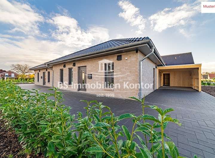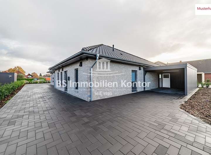 Lassen Sie sich von diesem charmanten Neubau-Bungalow begeistern! Auf einem idyllisch gelegenen Grundstück in Petkum entsteht bis 2026 ein attraktives Wohnensemble mit insgesamt 13 hochwertigen Bungalows – realisiert von einem renommierten regionalen Bauunternehmen. Die Kaufpreise bewegen sich je nach Lage zwischen 285.000 € und 325.000 €. Die äußerst ansprechende Raumaufteilung sowie die bodentiefen Fenster, lassen die ca. 87qm große Wohnfläche lichtdurchflutet und weitläufig erscheinen. Das pflegeleicht angelegte Grundstück bemisst ca. 350qm. Jede Bungalowhaushälfte verfügt über einen eigenen Carport nebst angegliedertem Abstellraum und eine angelegte Terrasse. Die Küche ist als offene Wohnküche geplant und lädt zum gemeinschaftlichen Kochen und Verweilen ein. Eine Küche ist nicht im Kaufpreis enthalten. Der über die Bodentreppe erreichbare Dachboden ist ebenfalls sehr großflächig und bietet Ihnen ausreichend Abstellmöglichkeiten. Die Immobilie wird nach den aktuellen, energetischen Richtlinien eines KFW55 Hauses erstellt. Standardmäßig verfügt der Bungalow über folgende Ausstattung: Elektrische Jalousien, Dreifachverglaste Fenster, Fußbodenheizung, Raufaser tapeziert, hochwertige Fliesen etc. Eine ausführliche Baubeschreibung erhalten Sie gerne auf Nachfrage. Sonderwünsche können gegen Aufpreis und sofern dies aufgrund des Baufortschrittes noch möglich ist, umgesetzt werden. Aufgrund der barrierefreien Anordnung der Räumlichkeiten eignet sich dieser Bungalow ideal als Altersruhesitz. Beheizt wird das Objekt durch eine Luft-Wärme-Pumpe. Ein Objekt für Menschen die das "ebenerdige Wohnen" bevorzugen. Zögern Sie nicht uns zu kontaktieren und vereinbaren Sie gerne einen Besichtigungstermin für das baugleiche Musterhaus.