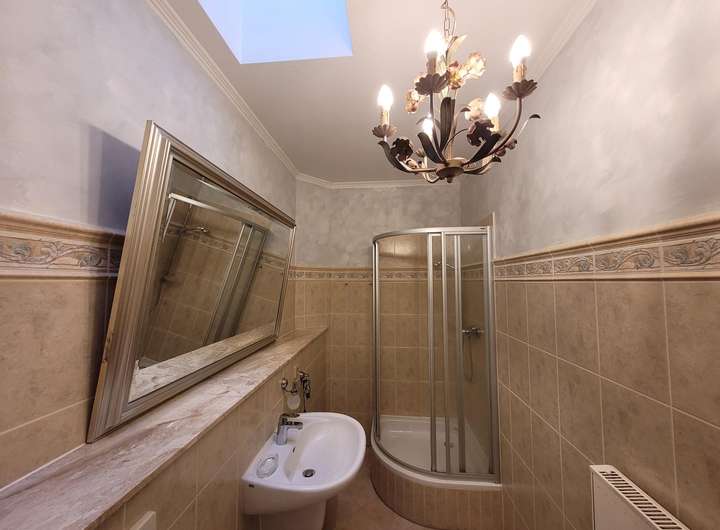 Das Bad ist besonders gefliest und ausgestattet mit einer Dusche.