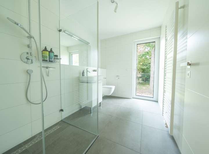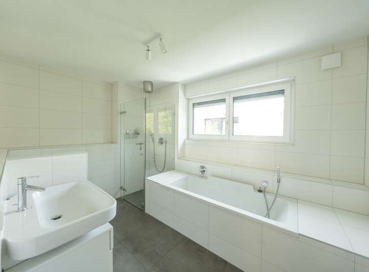 - Großes Bad im Elternschlafzimmer mit Badewanne und begehbarer Dusche