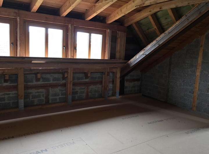 * obere Geschossdecke wurde gedämmt mit Holzwolledämmplatten