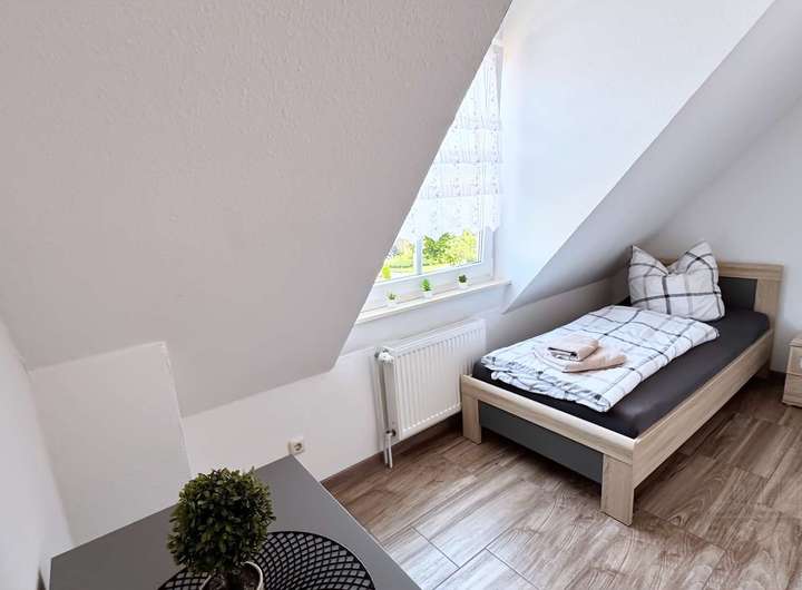 - Zimmer: 3, davon 2 Schlafzimmer im Dachgeschoss
