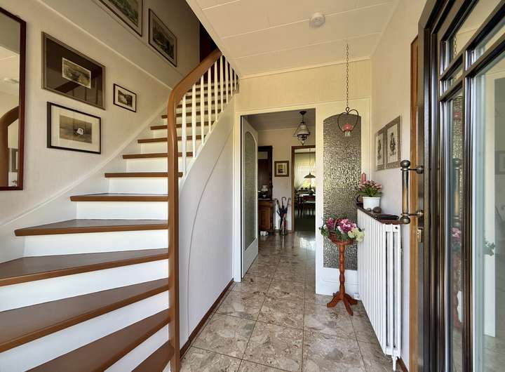 - Erdgeschoss: Windfang/Treppenhaus mit Gäste-WC, große Diele mit Garderobe, Küche mit Essplatz, Esszimmer, großes Wohnzimmer mit Ausgang zur Terrasse und angeschlossenem Arbeitszimmer, Gäste-/Kinderzimmer, Schlafzimmer, Badezimmer