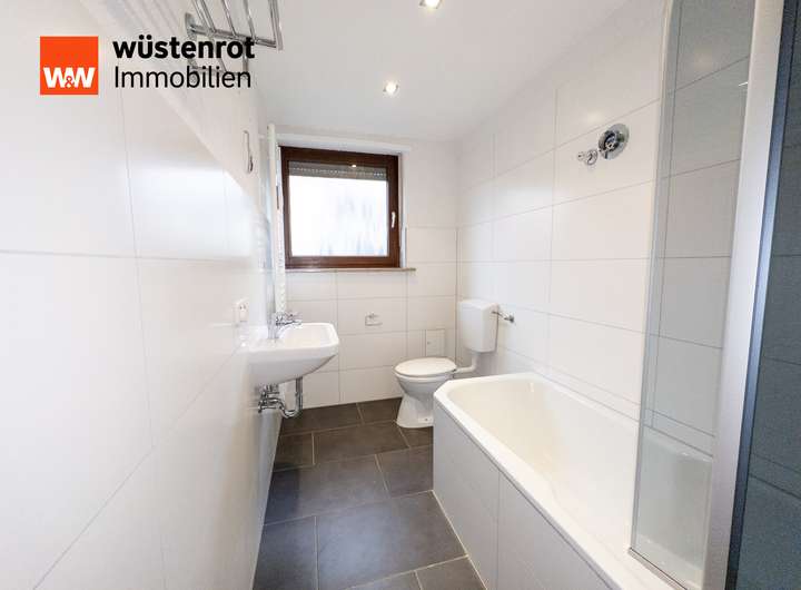 Das klassisch gestaltete Badezimmer ist mit einer Badewanne inklusive praktischer Duschabtrennung ausgestattet. Für zusätzlichen Stauraum sorgt eine kleine, aber nützliche Abstellkammer direkt in der Wohnung.