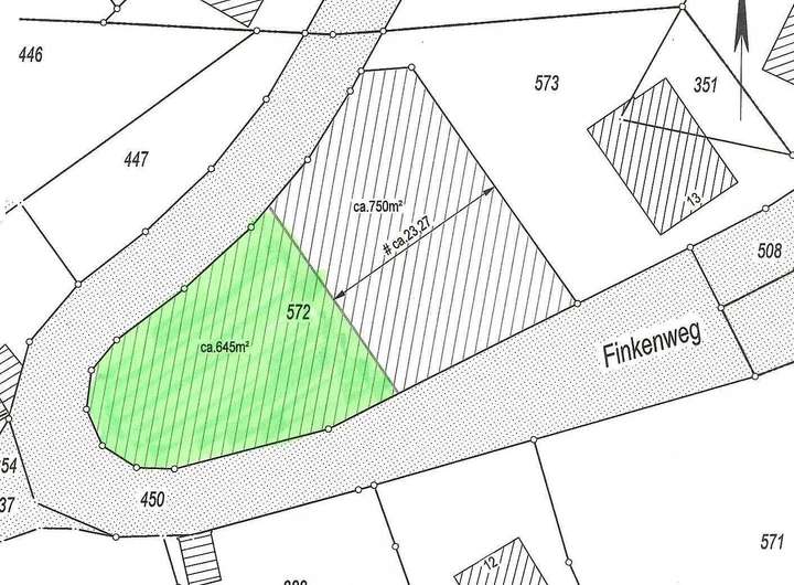 und wird von drei Seiten vom Weg umschlossen. Die Straße Finkenweg ist endgültig