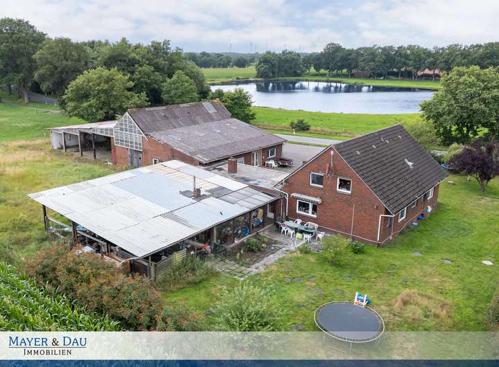 In idyllischer Lage im Außenbereich der Gemeinde Apen, im Landkreis Westerstede, befindet sich dieses weitläufige Anwesen bestehend aus zwei separaten Wohnhäusern mit insgesamt vier Wohneinheiten. Das im Jahr 1983 errichtete Objekt liegt auf einem großzügigen Grundstück von ca. 3.552 m² und bietet mit einer Gesamtwohnfläche von ca. 331 m² sowie insgesamt 11 Zimmern vielfältige Nutzungsmöglichkeiten laut Baugenehmigung – ideal für Mehrgenerationenwohnen, Wohnen und Arbeiten unter einem Dach oder zur (Teil-)Vermietung.