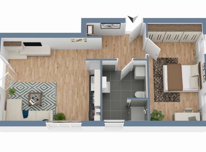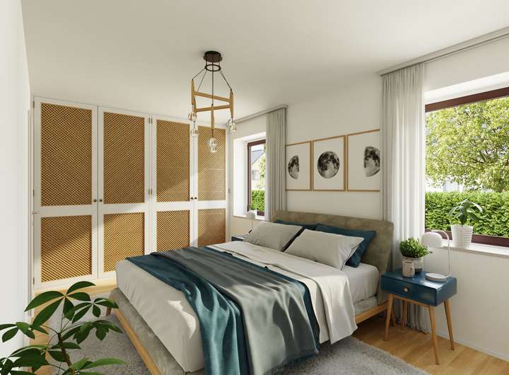 Im Schlafzimmer angekommen finden Sie ausreichend Platz für einen Kleiderschrank und ein Doppelbett.