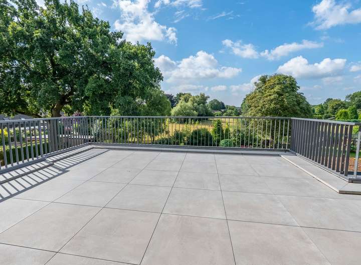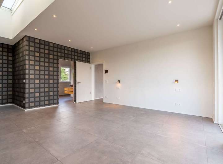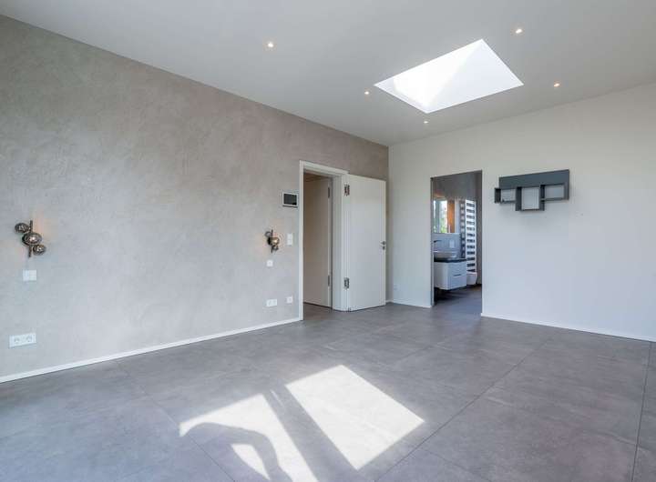 Der Ost- und der Westflügel der Wohnung verfügen jeweils über ein großzügiges Schlafzimmer mit angrenzendem Luxusbad en suite – beide Tageslichtbäder sind hochwertig ausgestattet. Zwei weitere, tagesbelichtete Räume stehen zur Verfügung, die sich bei Bedarf flexibel als Hauswirtschaftsraum, Homeoffice oder Kinderzimmer nutzen lassen. Ein Gäste-WC sowie ein Abstellraum ergänzen das Raumangebot.