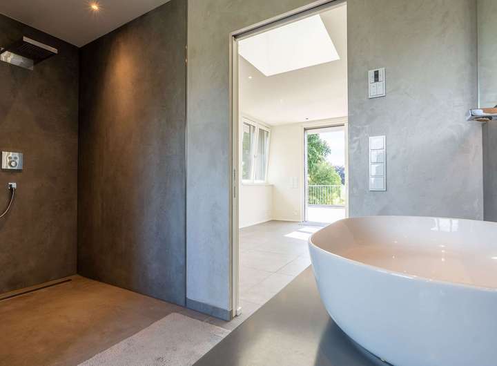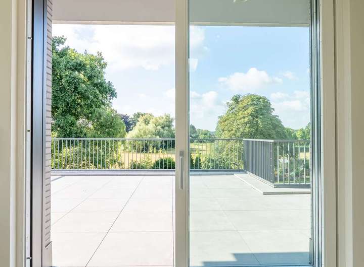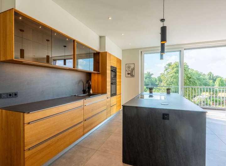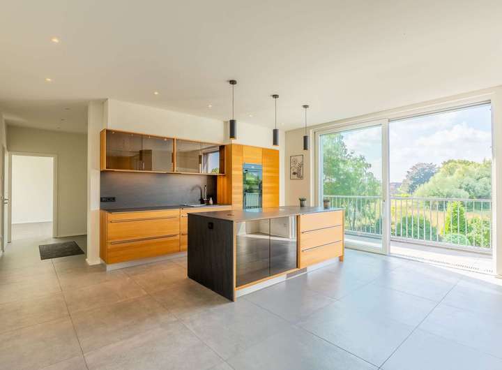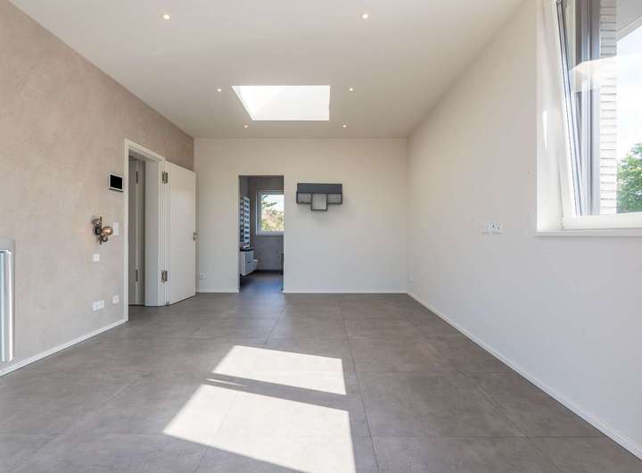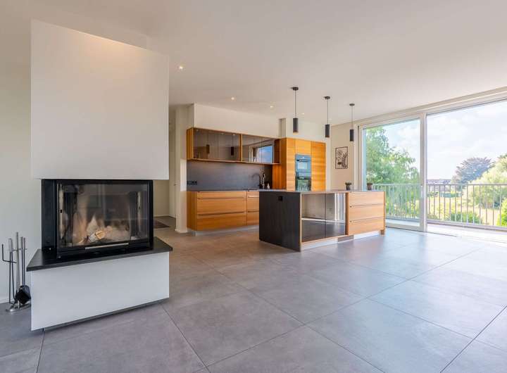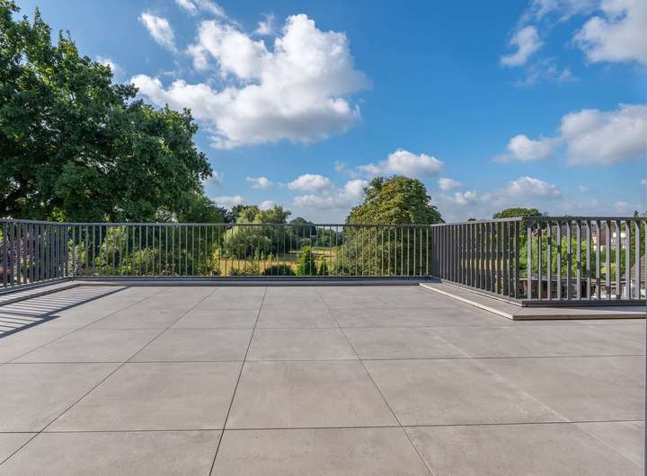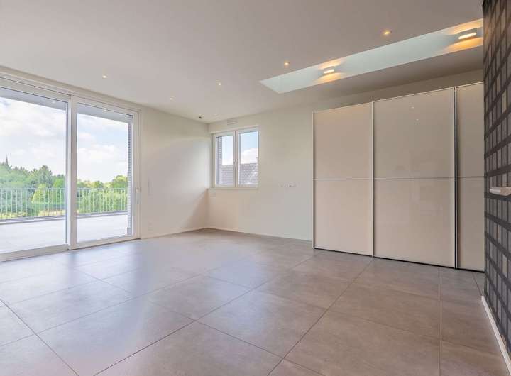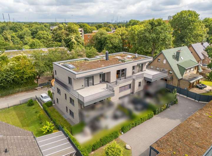 Dieses exklusive Penthouse erstreckt sich über das komplette 2. Obergeschoss eines modernen Flachdachgebäudes mit nur sechs Wohneinheiten – in ruhiger Lage an den Feldern zwischen dem Warmen und dem Kalten Eigen. Der unverbaute, phänomenale Weitblick über die angrenzende Feldlandschaft verleiht der Wohnung eine ganz besondere Qualität.