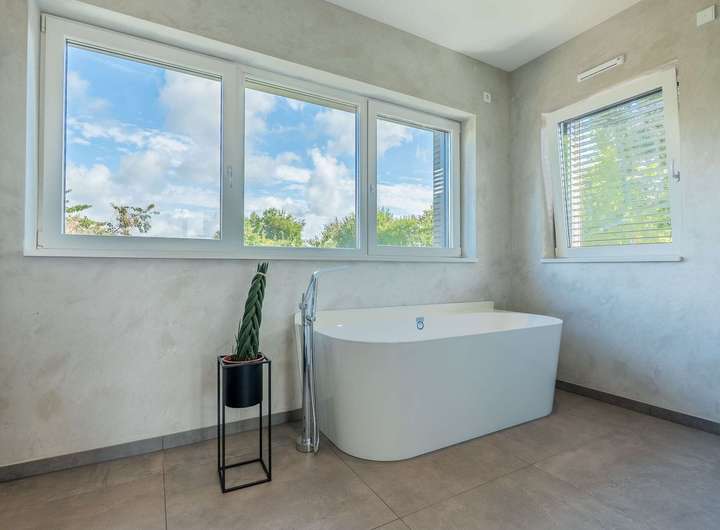 Für angenehmes Raumklima sorgt die moderne Klimadecke – ganz ohne Zugluft. Ergänzt wird die hochwertige Ausstattung durch einen eleganten Kamin im Wohnbereich, eine maßgefertigte Einbauküche (im Kaufpreis enthalten), eine Alarmanlage sowie eine geothermische Fußbodenheizung mit effizientem Energiekonzept. Zwei überdachte Stellplätze und ein eigener Kellerraum runden das Gesamtangebot ab.