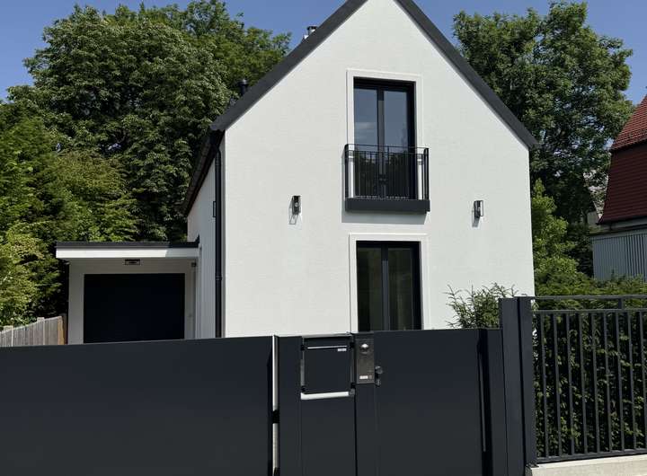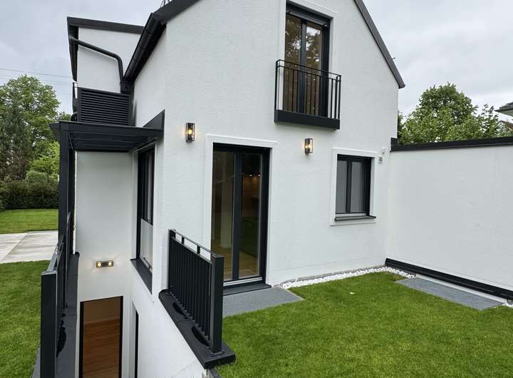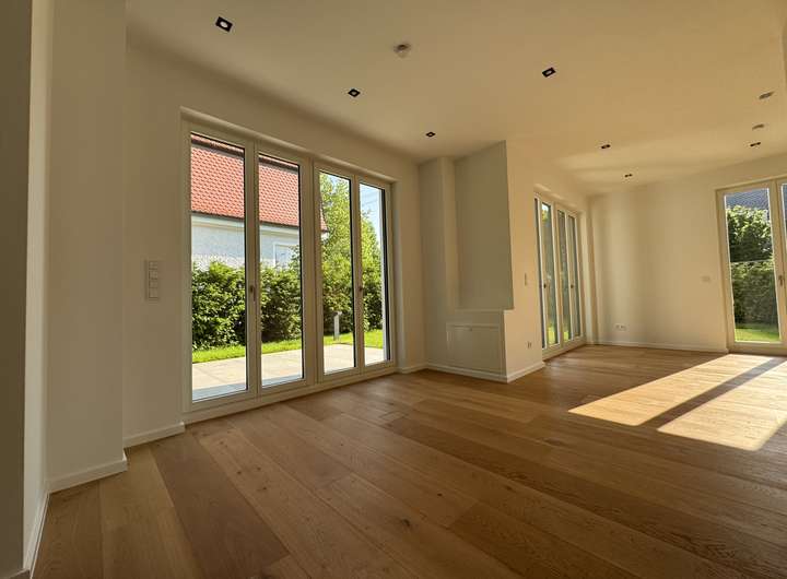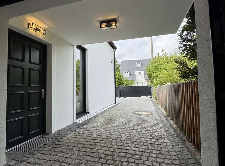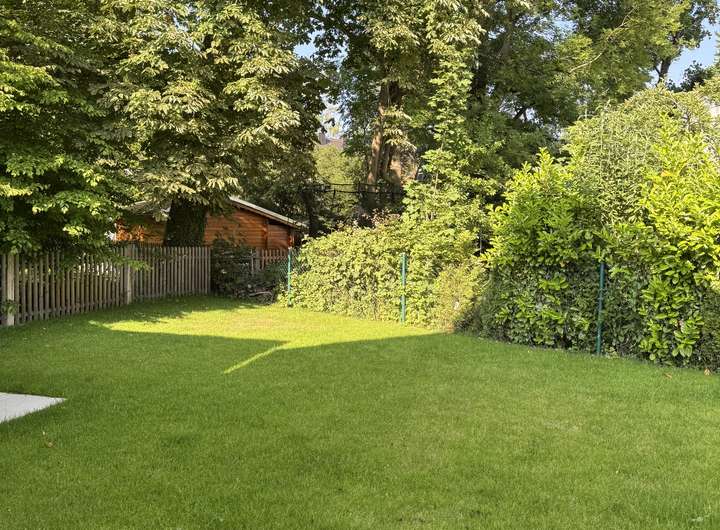 Das Grundstück (360m²) bietet absolut ruhige Privatsphäre in grüner Umgebung, wobei das Zentrum der Gemeinde Gräfelfing nur wenige Minuten zu Fuß entfernt liegt