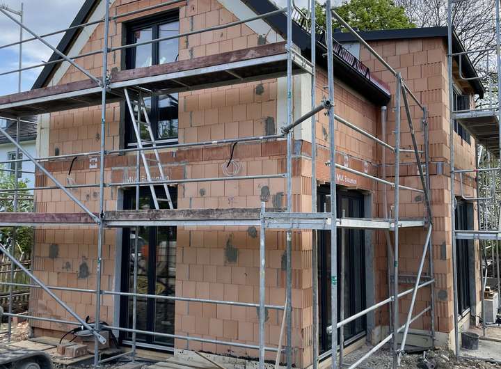 Das freistehende Haus ist im Jahr 2023 in massiver Ziegelbauweise errichtet worden und hat eine Gebäudelänge von 11,14 m und ist damit länger als die Nachbarbebauung.