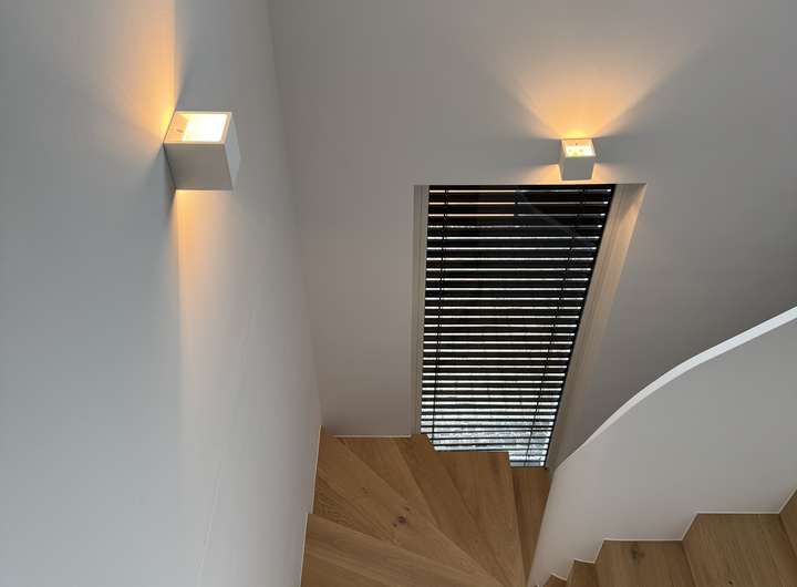 73 Deckeneinbau-Downlights (flächenbündige LED-Spots) in allen Stockwerken als Grundbeleuchtung (dimmbar)