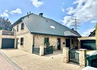 Die Immobilie ruht auf einem großzügigen, nicht einsehbaren Grundstück, das sich über mehrere Flurstücke erstreckt – eine wahre Oase der Privatsphäre. Durch die komfortable Lage am Ende einer Sackgasse bietet es vollkommene Ruhe – ideal für Familien, die naturnah und dennoch eingebunden in einer freundlichen Nachbarschaft leben möchten. Eine großzügige Doppelgarage sowie eine separate Einzelgarage für die zweite Wohneinheit bieten ausreichend Platz für mehrere Fahrzeuge und ergänzen die Immobilie auf praktische Weise. Die Zufahrt zum Haus erfolgt über eine elektrisch gesteuerte Toreinfahrt, die Komfort und Sicherheit auf elegante Weise verbindet.
