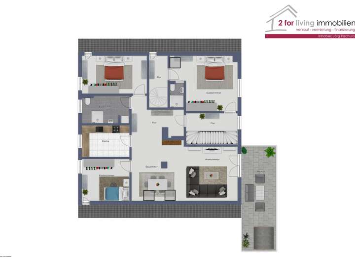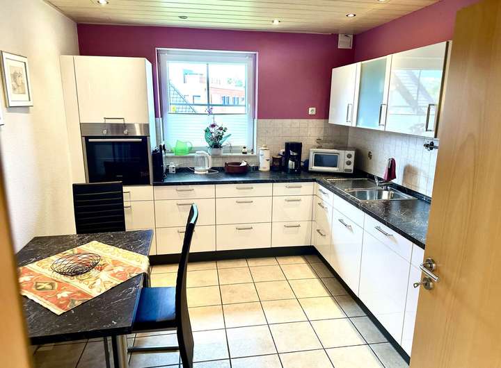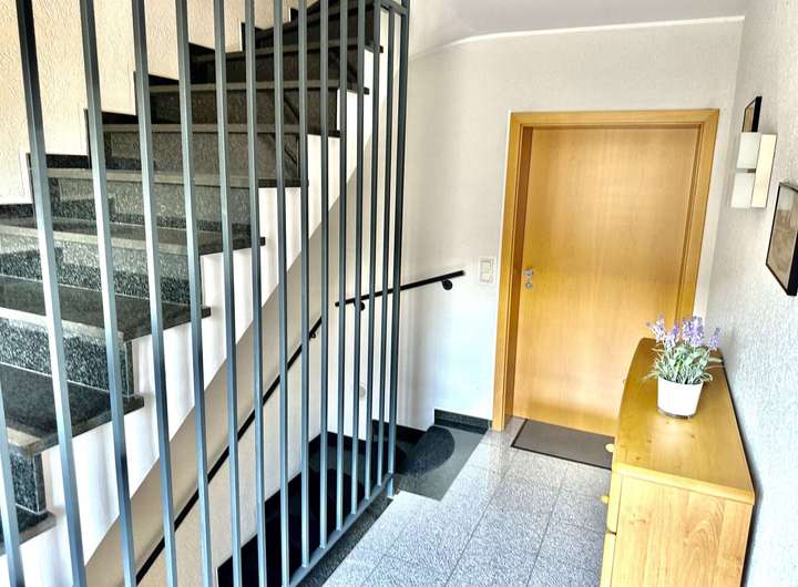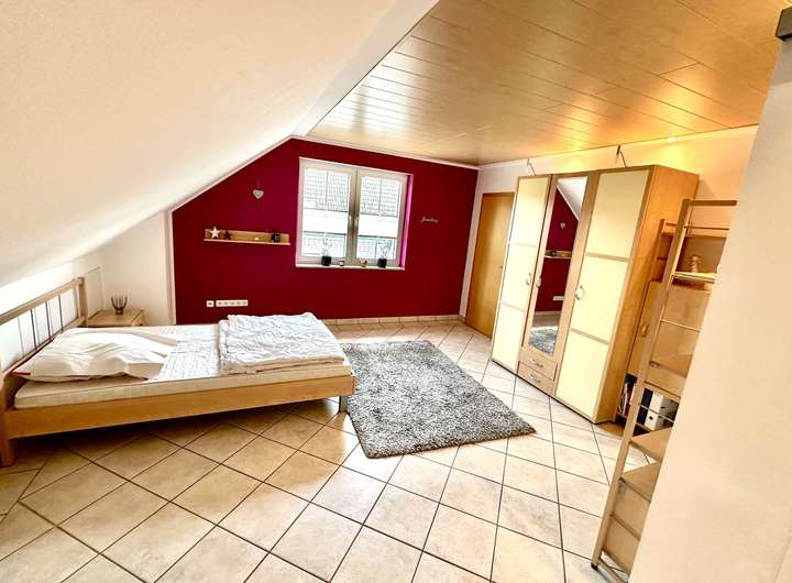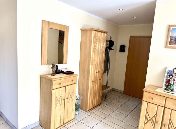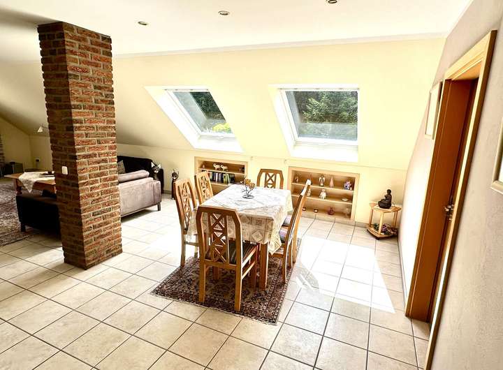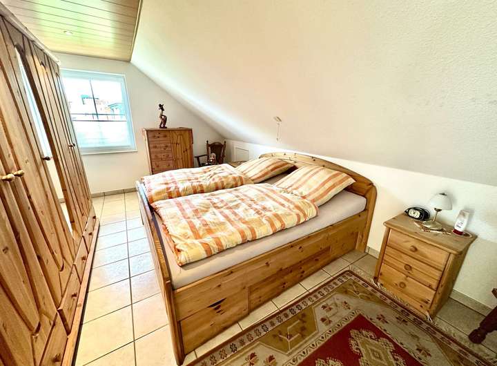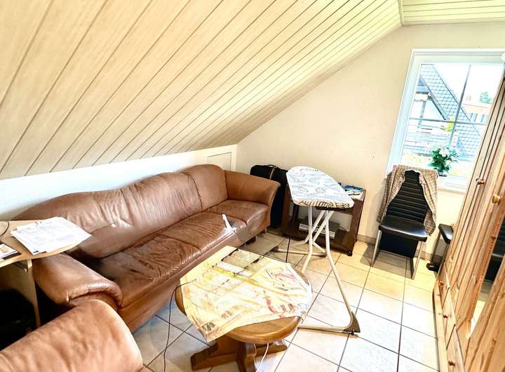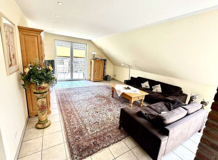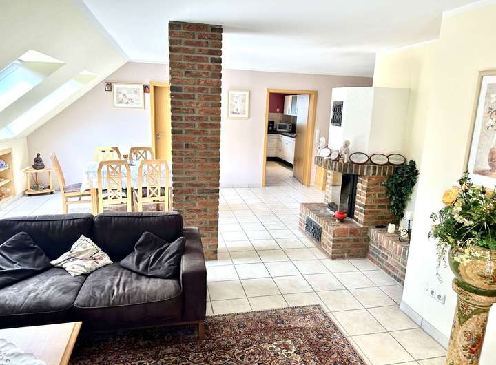 Die zweite Wohneinheit im Dachgeschoss ist seitlich des Hauses über einen separaten Eingang zu erreichen. Helle, gut dimensioniere Räumlichkeiten zeichnen diese Wohneinheit aus und schaffen ein harmonisches Wohngefühl. Die offen angelegte Diele erstreckt sich bis in das großzügige Wohnzimmer mit genügend Platz für eine gemütliche Wohnlandschaft und e
