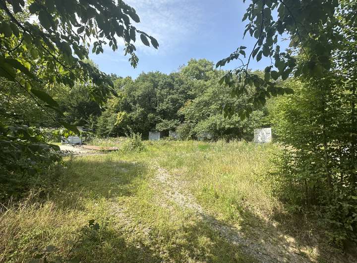 Das Grundstück befindet sich in einem Industriegebiet von Wuppertal Vohwinkel - direkt an der Waldgrenze mit sehr viel Grünflächen für ausgedehnte Spaziergänge. Öffentliche Verkehrsmittel halten in der Nähe der Einfahrt.
