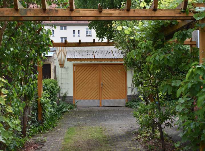 Auf dem Grundstück befindet sich eine großzüge Garage in der auch 2 Fahrzeuge Platz finden. Zusätzlich gibt es vor der Garage geschütze Stellplätze für 2 weitere Fahrzeuge. Der großzüge Keller kann als Wohnraum genutzt werden und verfügt über einen Außenzugang. Auf der Terasse, die etwas höher gelegen ist, kann man sonnige Stunden verbringen.