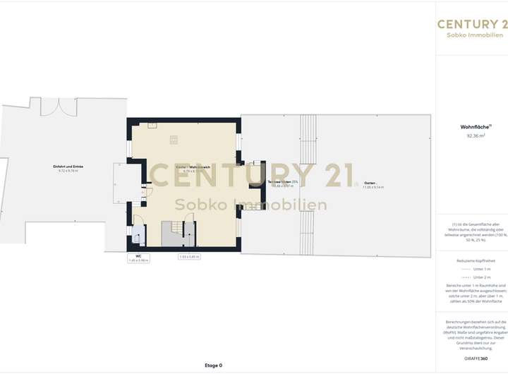 Alle Angaben beruhen auf Aussagen des Eigentümers, für deren Richtigkeit übernimmt CENTURY 21 Sobko Immobilien keine Gewähr. Für Bilder im Internet wird keine Haftung übernommen. Basis ist die Besichtigung vor Ort. Nur die im Notarvertrag beschriebenen Eigenschaften werden bei Abschluss des Kaufvertrags rechtsverbindlich. Insbesondere übernehmen wir keine Haftung für die Fläche, da wir die Fläche nicht nachgemessen haben.
