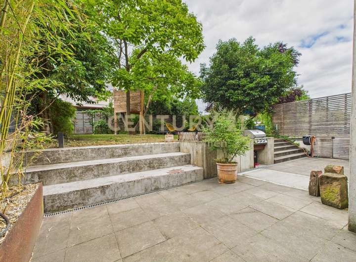 Der handliche Garten ist ein echtes Highlight: mit Grillplatz, Terrasse und integriertem Sandspielbereich bietet er Kindern und Erwachsenen gleichermaßen Freiraum zum Spielen und Erholen.