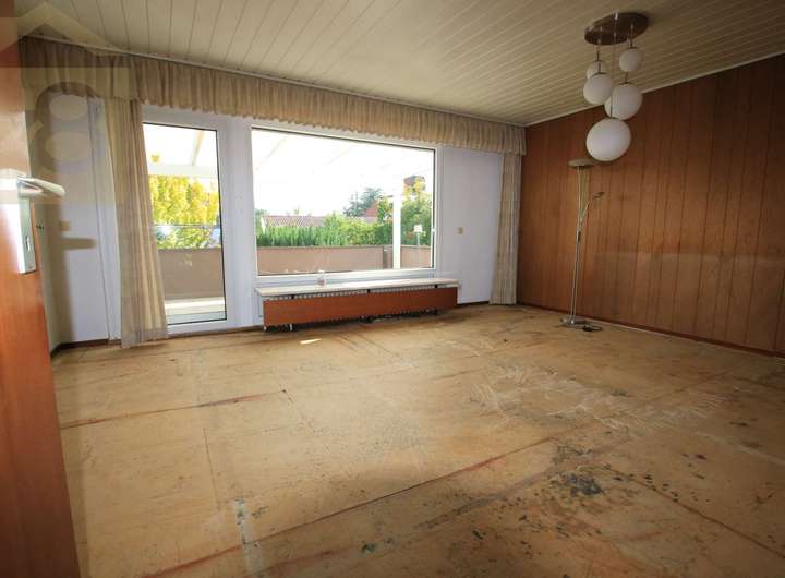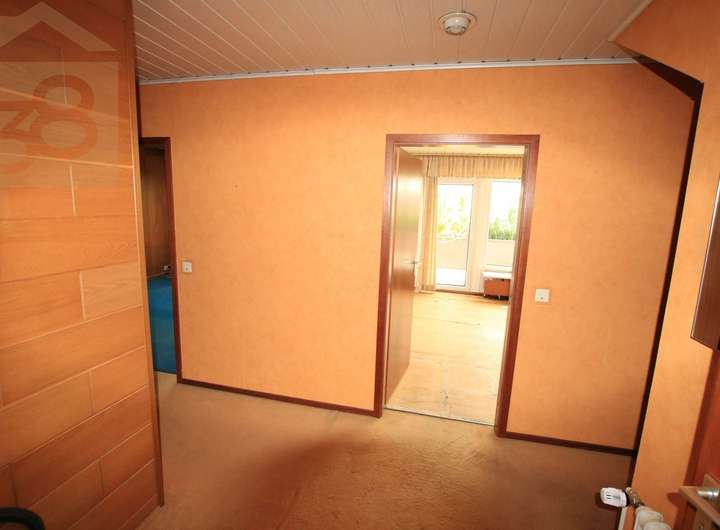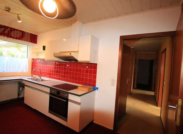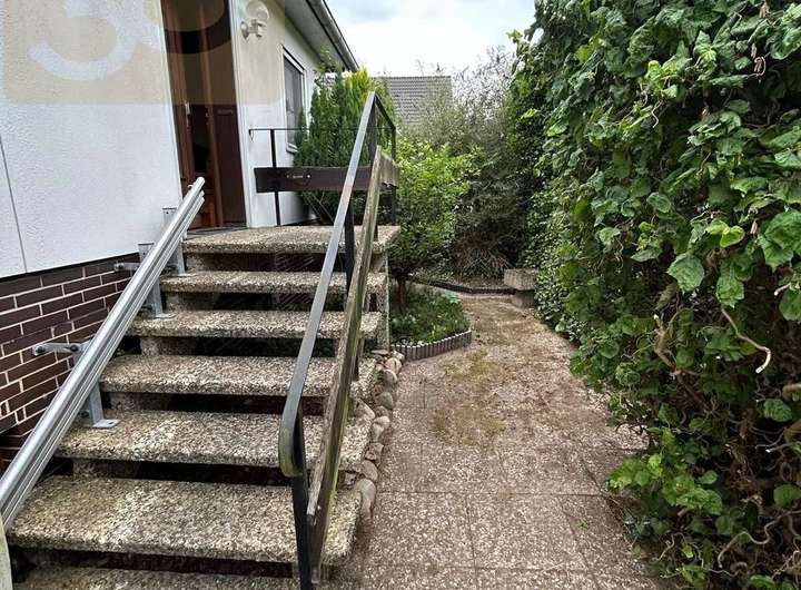 Über den Windfang betreten Sie den zentralen Flur im Erdgeschoss. Es erwarten Sie das Wohnzimmer, ein Schlafzimmer, ein Kinderzimmer sowie Küche und Bad auf dieser Etage. Das gemütliche Wohnzimmer ist mit einem Kaminanschluss ausgestattet und bietet Zugang zur überdachten Terrasse für erholsame Stunden. Das modernisierte Badezimmer verfügt über eine Dusche mit barrierefreiem Zugang. Die Küche ist mit einer Einbauküche älteren Baujahrs ausgestattet.