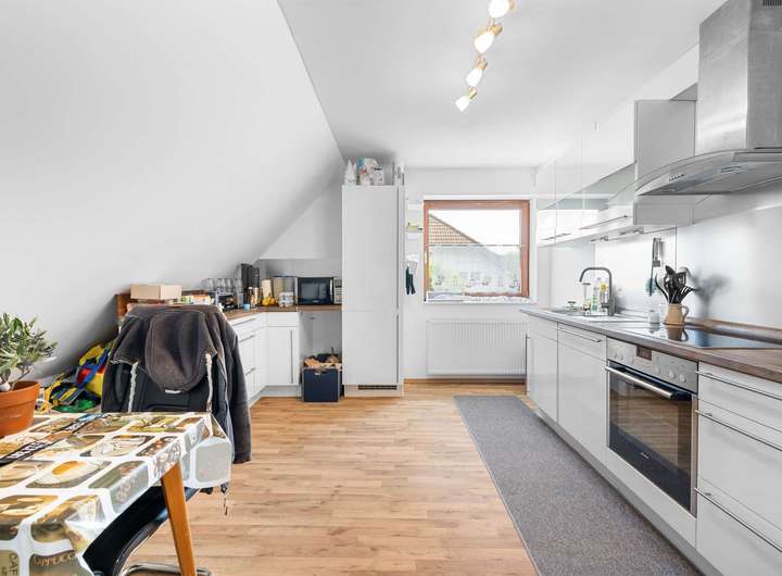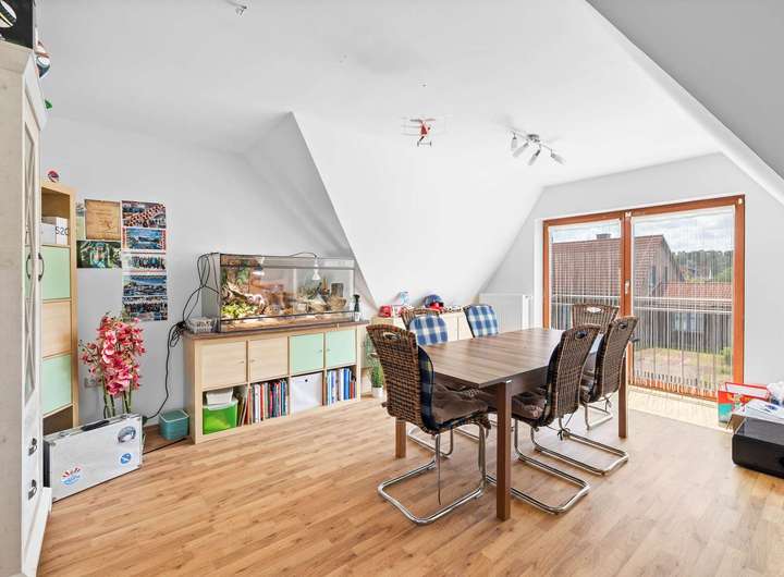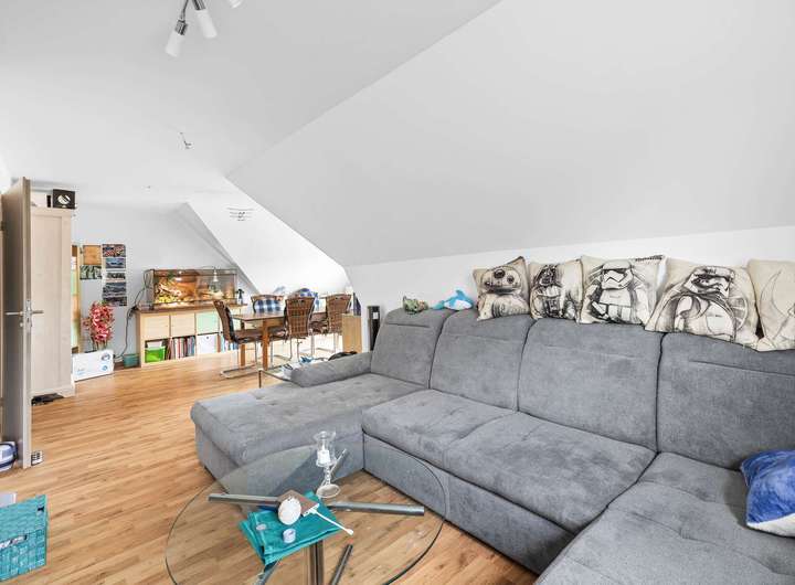 Der Dachboden ist bereits gedämmt und teilweise ausgebaut. Aktuell dient er als praktische Lagerfläche, bietet aber auch Perspektiven für einen späteren Ausbau – sei es als Hobbyraum oder Atelier.