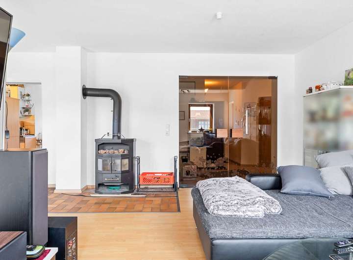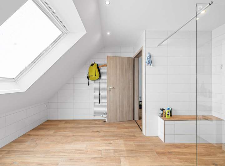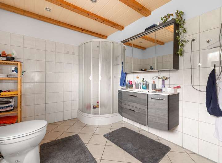 Das Obergeschoss wurde im Jahr 2016 umfassend ausgebaut. Was zuvor nur Rohbau war, präsentiert sich heute als moderner, lichtdurchfluteter Wohnbereich mit durchdachtem Grundriss. Ein ursprünglich geplanter Balkon wurde in die Wohnfläche integriert, wodurch zusätzlicher Raum geschaffen wurde. Auch das Badezimmer überzeugt: Ausgestattet mit Dusche, Badewanne und einer angenehmen Fußbodenheizung über den Rücklauf der Zentralheizung bietet es einen zeitgemäßen Komfort. In jedem Zimmer des Obergeschosses sind Netzwerkanschlüsse vorhanden, was besonders für Homeoffice oder Multimedia-Nutzung von Vorteil ist.