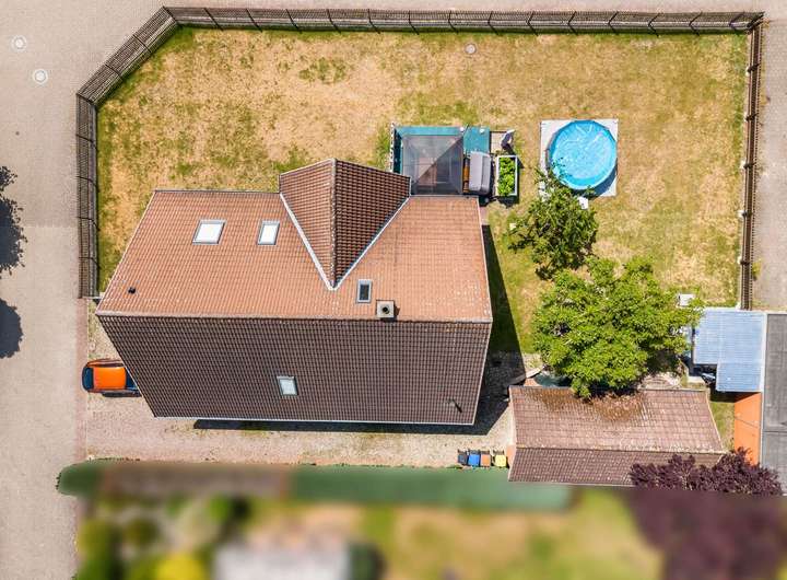 Der Außenbereich überzeugt mit viel Platz und einem gewachsenen Garten, der von einem Walnussbaum und einem Süßkirschbaum geprägt ist – ein kleines Naturidyll mit Charme. Die separate Garage mit Satteldach bietet Platz für ein Fahrzeug, während mehrere zusätzliche Außenstellplätze zur Verfügung stehen.