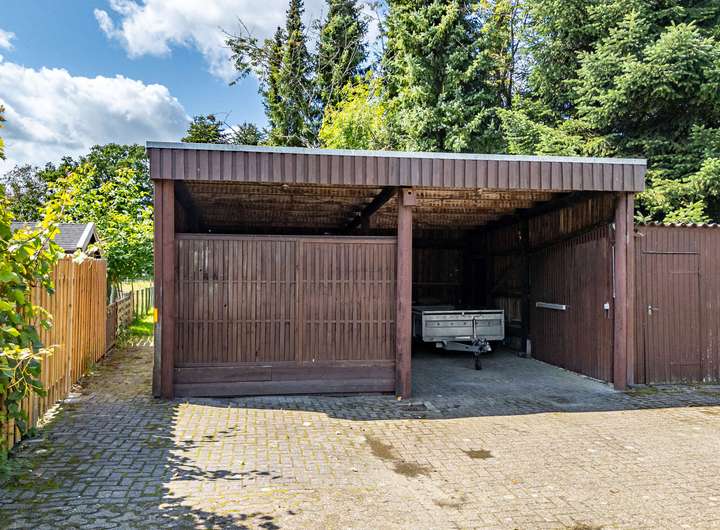 Zusätzlich stehen Ihnen eine Garage, ein Doppelcarport, eine Werkstatt, ein Geräteraum, ein Heizungsraum und ein Holzunterstand zur Verfügung – perfekt für alle, die Wert auf Stauraum und funktionale Nebenflächen legen.