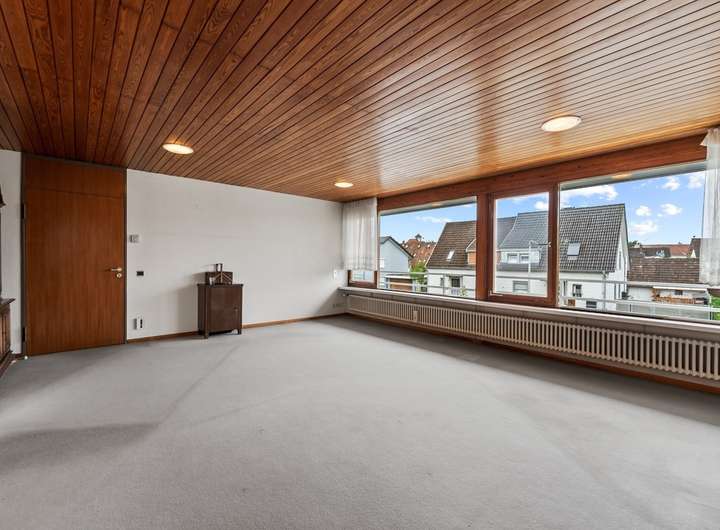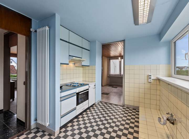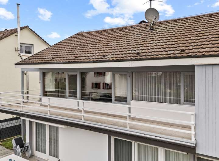 Auf ca. 211 m² Wohnfläche und einem Grundstück von rund 984 m² eröffnet das Haus vielfältige Möglichkeiten: Im Erdgeschoss erwartet Sie ein großzügiges Wohn- und Esszimmer mit direktem Zugang auf die sonnige Terrasse – perfekt für lange Sommerabende im Freien. Dazu kommen eine praktische Einbauküche, ein Schlafzimmer, ein Kinderzimmer, ein Hauswirtschaftsraum, der derzeit als Waschküche genutzt wird und nach Möglichkeit auch zu weiterem Wohnraum umgestaltet werden kann, sowie ein helles Tageslichtbad mit Dusche. Eine weitere Terrasse lädt zu neuen Gestaltungsideen ein. Das Obergeschoss punktet mit einem besonders großzügigen Wohnzimmer, einem Esszimmer, einem Arbeits- oder Gästezimmer, einem weiteren Schlafzimmer sowie einer zweiten Einbauküche. Hier sorgt ein Tageslichtbad mit Wanne und ein separates WC für Komfort. Vom Balkon aus genießen Sie den Blick über den Vorgarten – ein charmanter Platz für entspannende Momente. Diese Wohneinheit steht leer und kann auf Vordermann gebracht und direkt bezogen werden.
