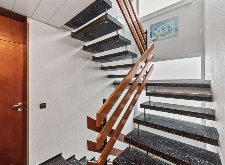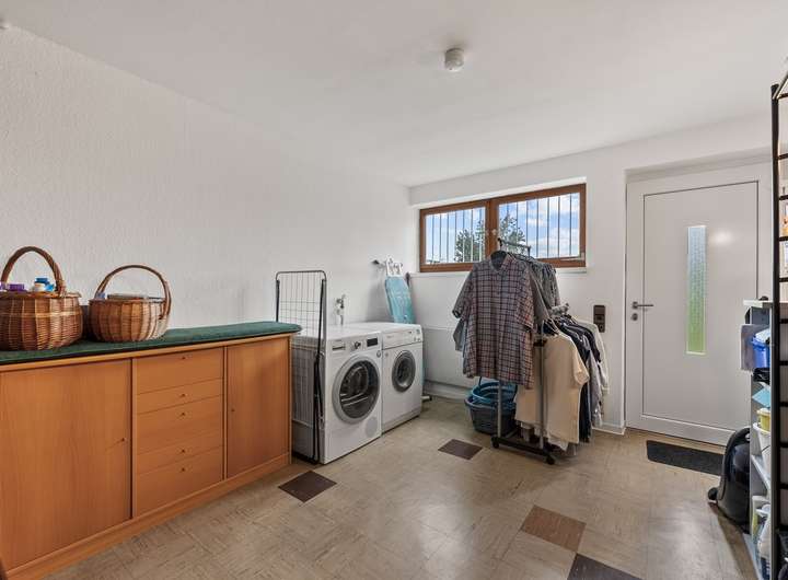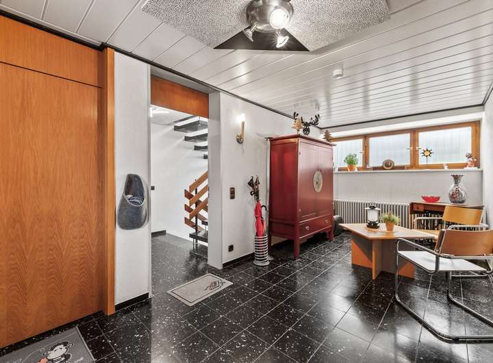 Die Ausstattung ist funktional und gepflegt, zugleich bietet sich Raum für individuelle Modernisierungen, um dem Haus Ihre persönliche Note zu verleihen. Dank der beiden Küchen eignet es sich nicht nur als großzügiges Einfamilienhaus, sondern auch hervorragend für zwei Generationen oder für Wohnen und Arbeiten unter einem Dach. Für Energie sorgt eine praktische Pelletsheizung aus dem Jahr 2008. In der Garage mit elektrischem Garagentor, steht Ihnen zudem eine moderne 11-kW-Wallbox zur Verfügung – ideal für E-Mobilität. Im Kellergeschoss befinden sich 4 Kellerräume, eine kleines Büro, eine Sauna und ein Tauchbecken. Die Abwasserleitungen wurden bereits teilweise erneuert. Ein echtes Highlight ist der großzügige Garten, der mit seiner offenen Weite begeistert und viel Platz für Kinder, Hobbygärtner und entspannte Stunden im Freien bietet. Eine zweite Garage für Ihren PKW rundet das Platzangebot ab. Diese kann auch als Gartenhaus genutzt werden.