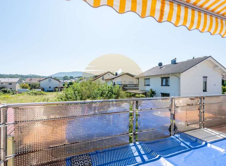Draußen geht das Wohlfühlprogramm weiter: Eine große Terrasse im Erdgeschoss mit Blick in den weitläufigen Garten lädt zu langen Grillabenden ein. Im Obergeschoss wartet ein Balkon, der gerade neue Fliesen bekommt, der sich perfekt für den ersten Kaffee am Morgen eignet.