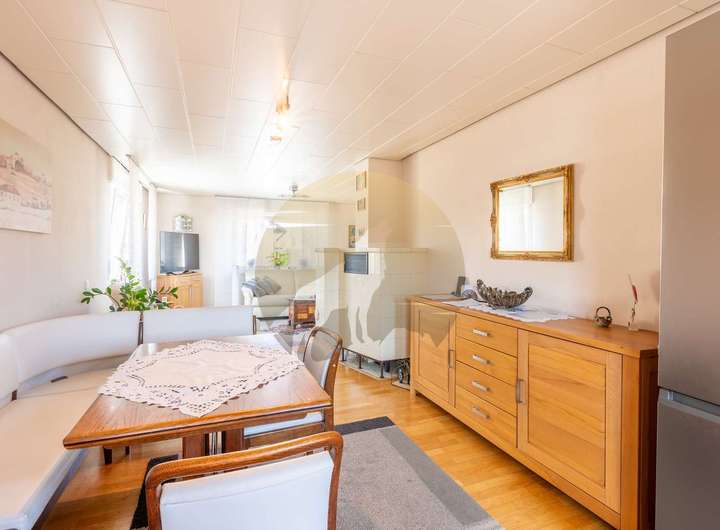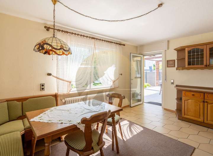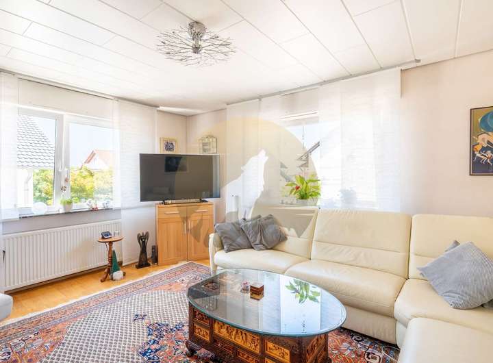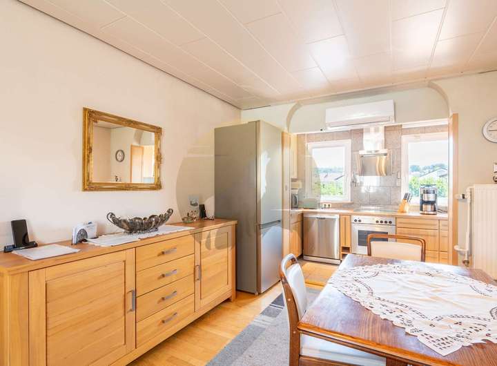 Im Inneren sorgen Parkett- und Fliesenböden für eine angenehme Mischung aus Wärme und Eleganz. Eine moderne Einbauküche, Gäste-WC, Keller und separater Abstellraum runden das Angebot ab.