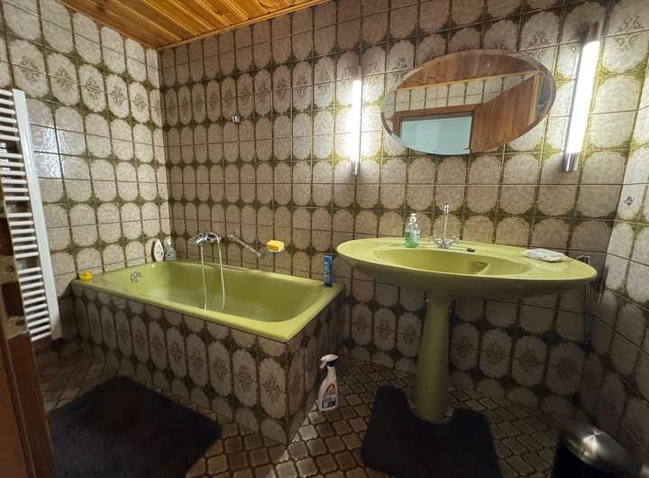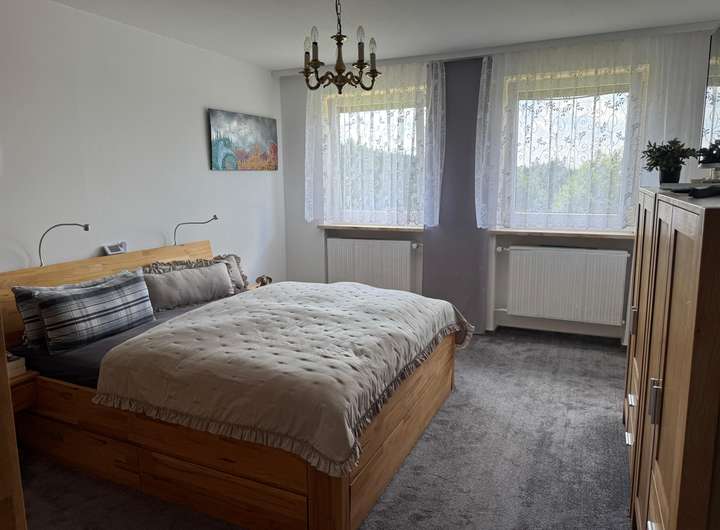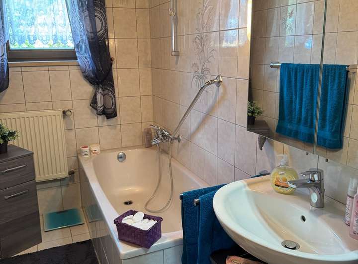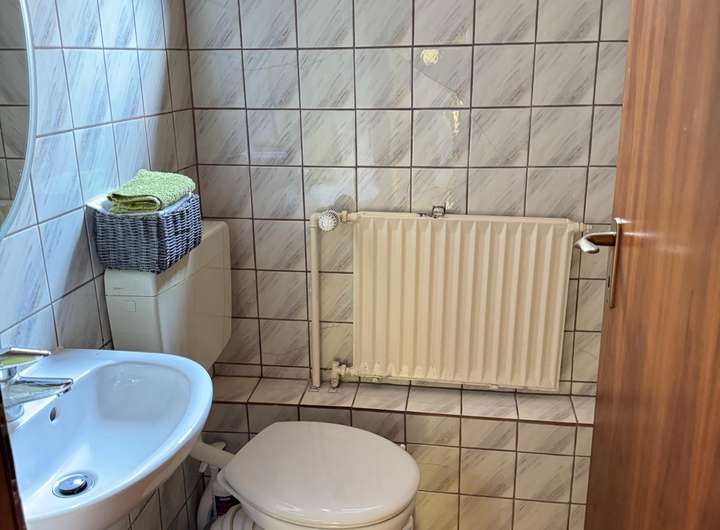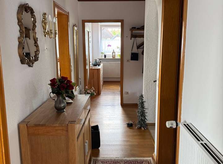 Die größere Wohnung befindet sich im Erdgeschoss sowie im Obergeschoss mit insgesamt 5 Zimmern mit insgesamt ca. 116m². Das 1-Zimmer-Apartment mit ca. 65m² im Untergeschoss ist über einen separaten Zugang sowie durch das Treppenhaus erreichbar.