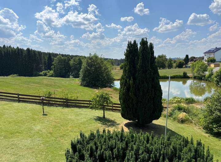 Umgeben von malerischen Landschaften, Wäldern und Wiesen lädt der liebevoll gestaltete Garten zum Verweilen ein. Auf der großzügigen Sonnenterrasse mit weitem Ausblick lassen sich Ruhe und Entspannung in vollen Zügen genießen.