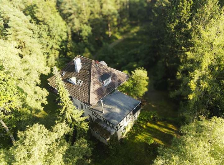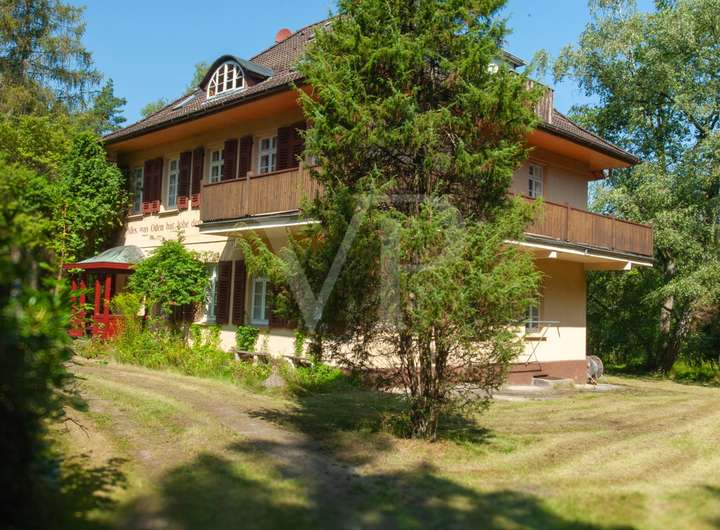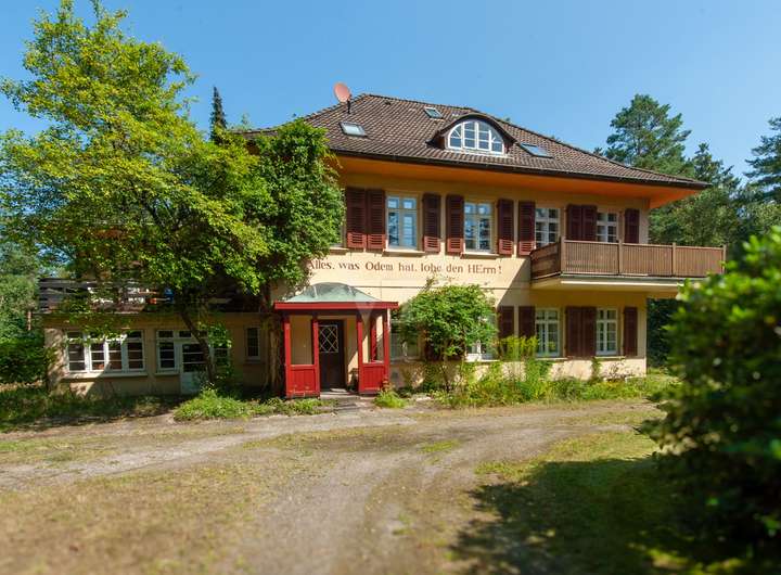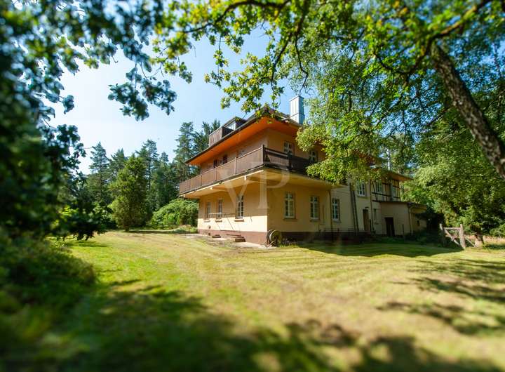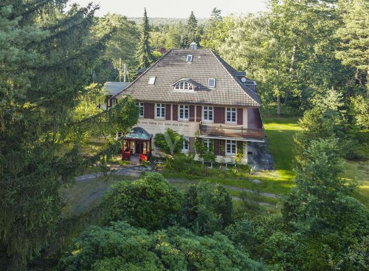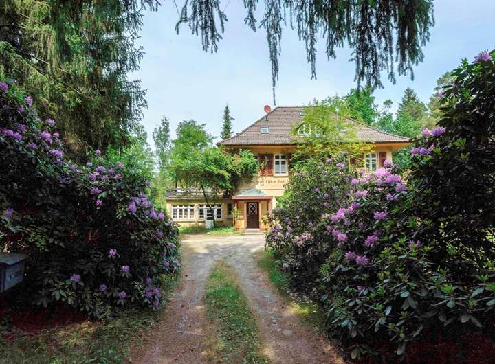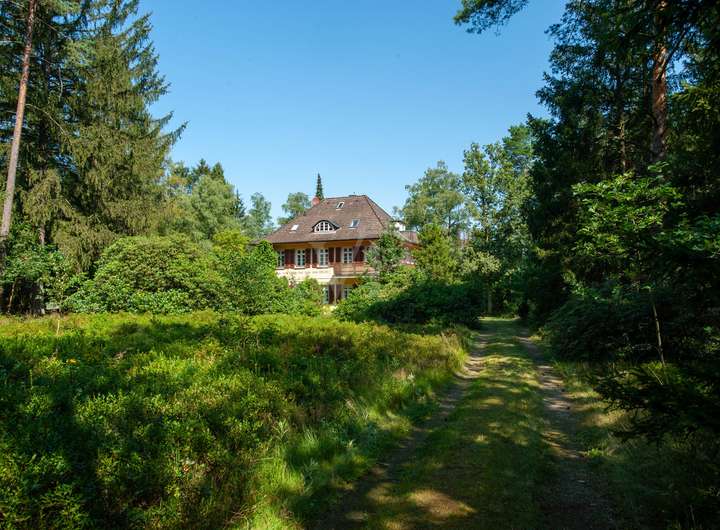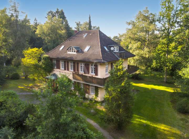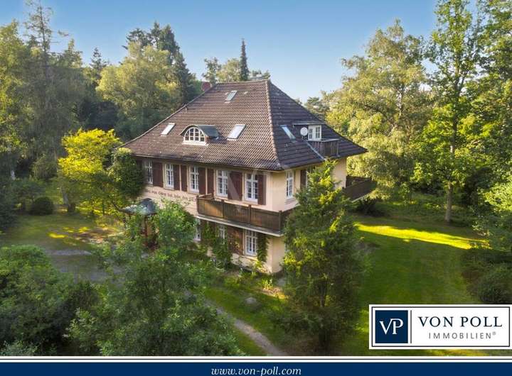 Die Jugendstil-Jagdvilla aus dem Jahr 1929 liegt auf einem 2,1 Hektar großen Grundstück mit lockerem Altbaumbestand. Das Haupthaus wurde im Jahr 1991 von einem Architekten in drei separate Wohnungen, ein Appartment und ein Kaminzimmer umgewandelt. Dabei wurden die Wohnungen umfassend kernsaniert und stilgerecht modernisiert. Im Jahr 2012 erfolgte zudem eine energetische Sanierung mit Holz-Kastenfenstern, der Dämmung des Luftzwischenraums des Außenmauerwerks und einer Dämmung der oberen Geschossdecke. Die Wohnfläche des Haupthauses beträgt ca. 340 Quadratmeter und verteilt sich auf insgesamt 13 Zimmer, darunter 8 Schlafzimmer und 5 Badezimmer. Zwei große Balkone und eine Terrasse laden zum Entspannen im Freien ein. Für Fahrzeuge stehen drei Einzelgaragen, ein Carport sowie Platz für 6 weitere Stellplätze zur Verfügung. Ein zusätzlicher Geräteraum, eine Werkstatt und ein Holzschuppen bieten ausreichend Stauraum für Gartengeräte und sonstiges Equipment. Die Heizungsanlage ist eine Ölbrennwertheizung aus dem Jahr 2008, ergänzt durch einen Warmwasserspeicher von 2023. Das Gästehaus auf dem Grundstück stammt aus dem Jahr 1957 und verfügt über 6 Zimmer mit ca. 100 Quadratmetern und einfacher Ausstattung. Beheizt wird dieses durch eine Gasheizung mit Flüssiggastank. Im Gegensatz zum Haupthaus wurde dieses in Holzständerbauweise errichtet und trägt ein Satteldach. Die Lage der Immobilie ist besonders attraktiv, da das Haus etwa 200 Meter von der Straße entfernt auf einer Waldlichtung liegt und das 2,1 Hektar große Grundstück von der Straße nicht einsehbar ist. Die Immobilie bietet somit eine idyllische Ruheoase und ist ideal für Naturliebhaber und Ruhesuchende. Insgesamt präsentiert sich diese, ursprünglich von einem Bremer Bankier errichtete nicht denkmalgeschützte Jugendstil-Jagdvilla als ein einzigartiges und historisches Landhaus mit großzügiger Raumgestaltung, modernem Komfort und einem weitläufigen Grundstück in naturnaher Umgebung. Zusätzlich zu dem hier angebotenen Grundstück, besteht die Möglichkeit ein ca. 2,39 ha großes Waldgrundstück in Richtung Kreisstraße dazu zu erwerben.