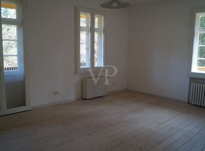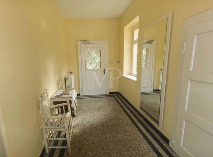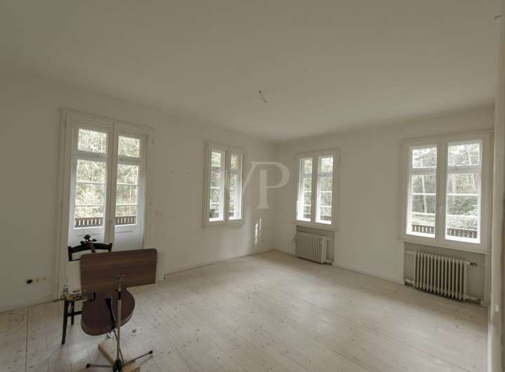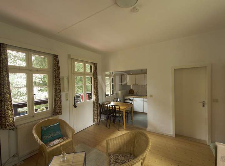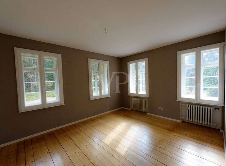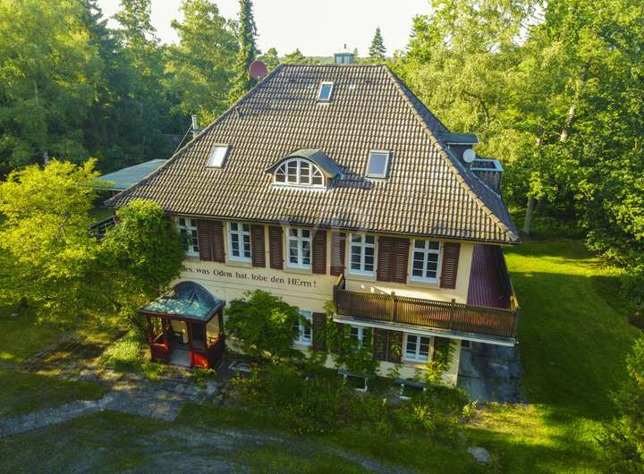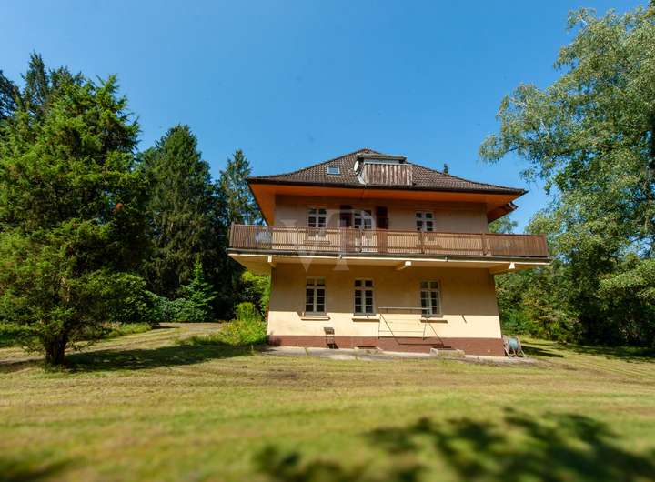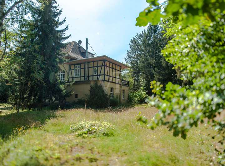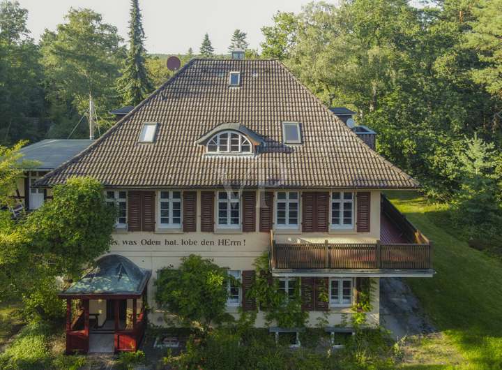 Die Jugendstil-Jagdvilla aus dem Jahr 1929 liegt auf einem 2,1 Hektar großen Grundstück mit lockerem Altbaumbestand. Das Haupthaus wurde im Jahr 1991 von einem Architekten in drei separate Wohnungen, ein Appartment und ein Kaminzimmer umgewandelt. Dabei wurden die Wohnungen umfassend kernsaniert und stilgerecht modernisiert. Im Jahr 2012 erfolgte zudem eine energetische Sanierung mit Holz-Kastenfenstern, der Dämmung des Luftzwischenraums des Außenmauerwerks und einer Dämmung der oberen Geschossdecke. Die Wohnfläche des Haupthauses beträgt ca. 340 Quadratmeter und verteilt sich auf insgesamt 13 Zimmer, darunter 8 Schlafzimmer und 5 Badezimmer. Zwei große Balkone und eine Terrasse laden zum Entspannen im Freien ein. Für Fahrzeuge stehen drei Einzelgaragen, ein Carport sowie Platz für 6 weitere Stellplätze zur Verfügung. Ein zusätzlicher Geräteraum, eine Werkstatt und ein Holzschuppen bieten ausreichend Stauraum für Gartengeräte und sonstiges Equipment. Die Heizungsanlage ist eine Ölbrennwertheizung aus dem Jahr 2008, ergänzt durch einen Warmwasserspeicher von 2023. Das Gästehaus auf dem Grundstück stammt aus dem Jahr 1957 und verfügt über 6 Zimmer mit ca. 100 Quadratmetern und einfacher Ausstattung. Beheizt wird dieses durch eine Gasheizung mit Flüssiggastank. Im Gegensatz zum Haupthaus wurde dieses in Holzständerbauweise errichtet und trägt ein Satteldach. Die Lage der Immobilie ist besonders attraktiv, da das Haus etwa 200 Meter von der Straße entfernt auf einer Waldlichtung liegt und das 2,1 Hektar große Grundstück von der Straße nicht einsehbar ist. Die Immobilie bietet somit eine idyllische Ruheoase und ist ideal für Naturliebhaber und Ruhesuchende. Insgesamt präsentiert sich diese, ursprünglich von einem Bremer Bankier errichtete nicht denkmalgeschützte Jugendstil-Jagdvilla als ein einzigartiges und historisches Landhaus mit großzügiger Raumgestaltung, modernem Komfort und einem weitläufigen Grundstück in naturnaher Umgebung. Zusätzlich zu dem hier angebotenen Grundstück, besteht die Möglichkeit ein ca. 2,39 ha großes Waldgrundstück in Richtung Kreisstraße dazu zu erwerben.